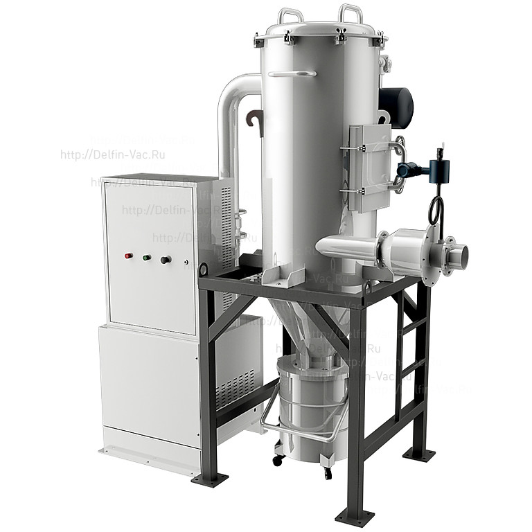 Конструктивно система состоит из мощного мотора, создающего вакуум, циклонного сепаратора, фильтрационного блока с картриджами, и бункера с разгрузочным клапаном.Все части системы закреплены на прочной раме с платформой, служащей основанием конструкции и помогающей при обслуживании во время работы.